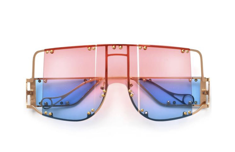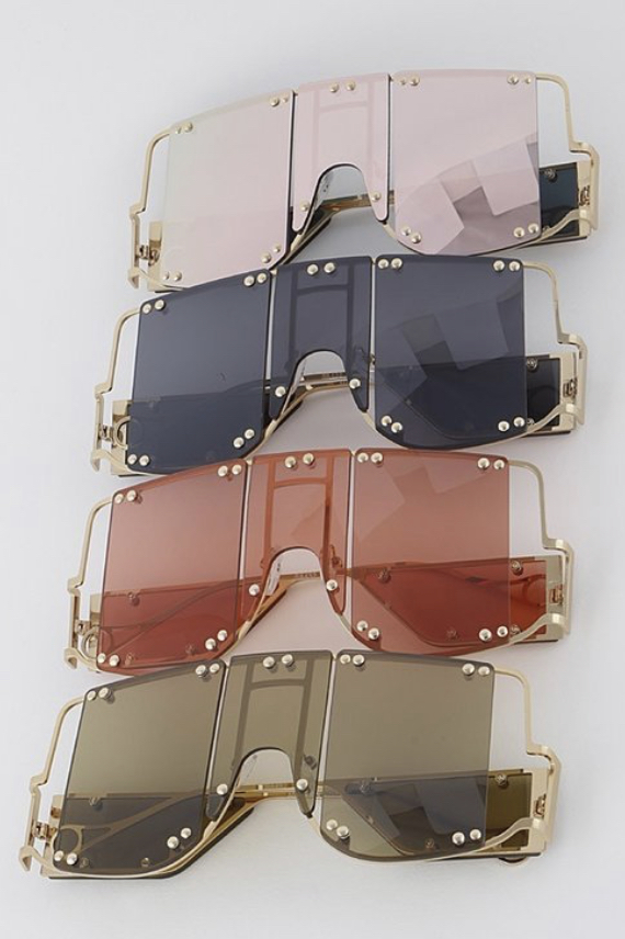 Large metal frame with various colored lens