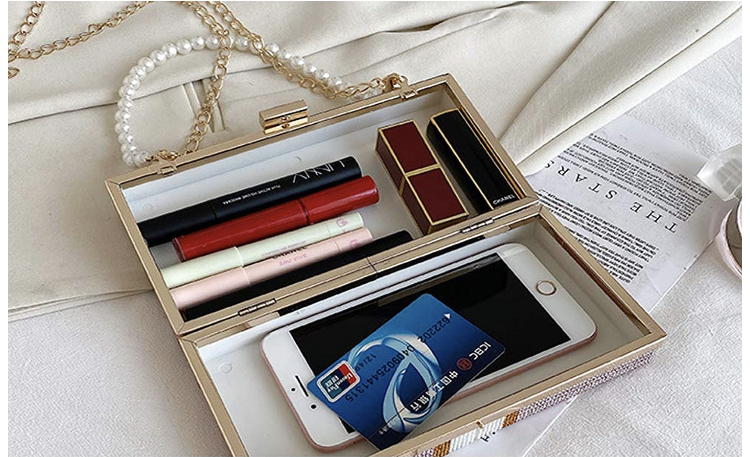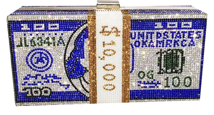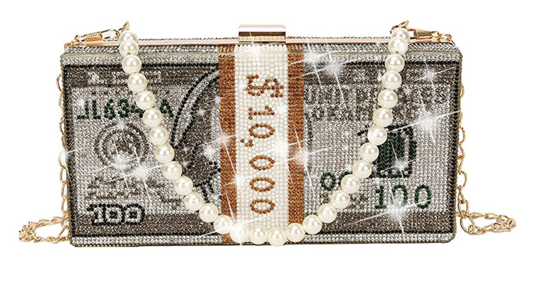 Money stack purse with chain for shoulder bag or pearl handle for clutch