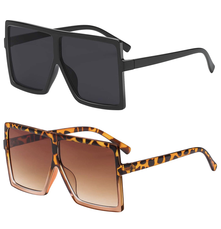 Large, flat top rectangular sunglasses