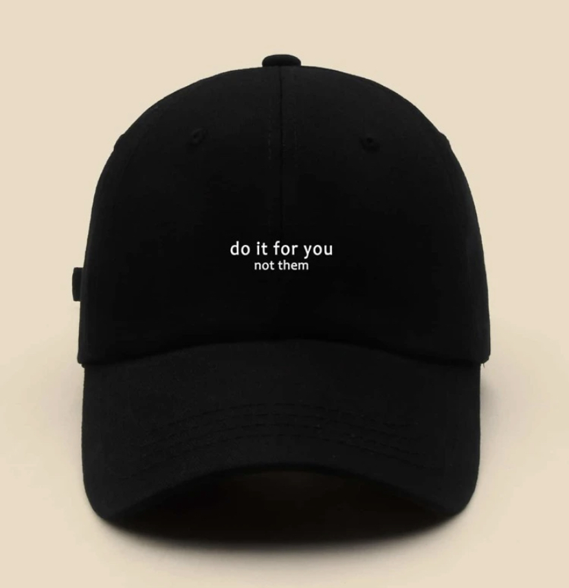 Adjustable dad style caps with quotes.