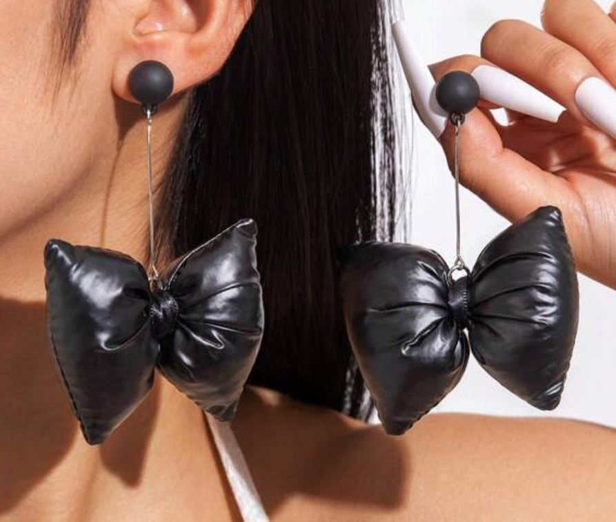 Dangle faux leather bow earrings