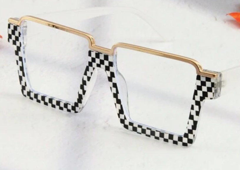 clear lens eyewear, with checkered design